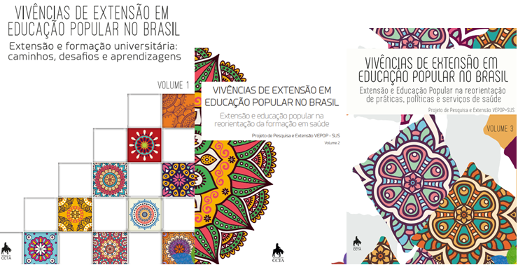 O Projeto de Pesquisa e Extensão VEPOP-SUS - Vivências de Extensão em Educação Popular e Saúde no SUS publica a série de livros "Vivências de Extensão em Educação Popular no Brasil, com três volumes : 1). Extensão e formação universitária: caminhos, desafios e aprendizagens; 2). Extensão e educação popular na reorientação da formação em saúde; 3). Extensão e Educação Popular na reorientação de práticas, políticas e serviços de saúde.