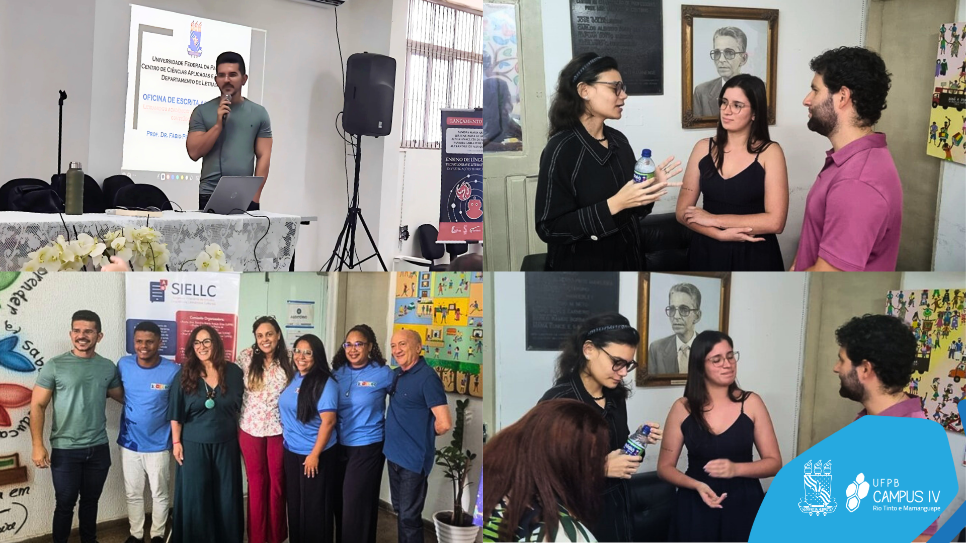 Como parte da programação de atividades propostas em virtude dos 10 anos de existência do curso de Licenciatura em Letras – Língua Inglesa (EaD), vinculado ao Centro de Ciências Aplicadas e Educação da Universidade Federal da Paraíba, a coordenação do curso promoveu, no dia 23 de outubro, o I Simpósio Itinerante de Estudos Linguísticos, Literários e Culturais (SIELLC) no Auditório do Polo UAB João Pessoa. A programação incluiu lançamento de livro, ministração de oficina pedagógica sobre Letramento Acadêmico e de palestra sobre Letramento Digital, além de exposição de artes e prática de conversação em Língua Inglesa.