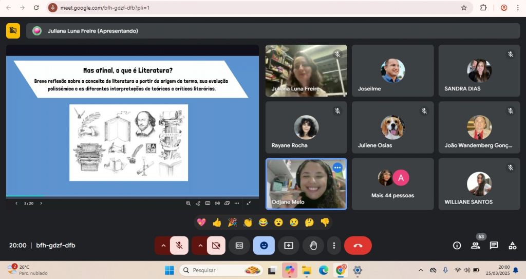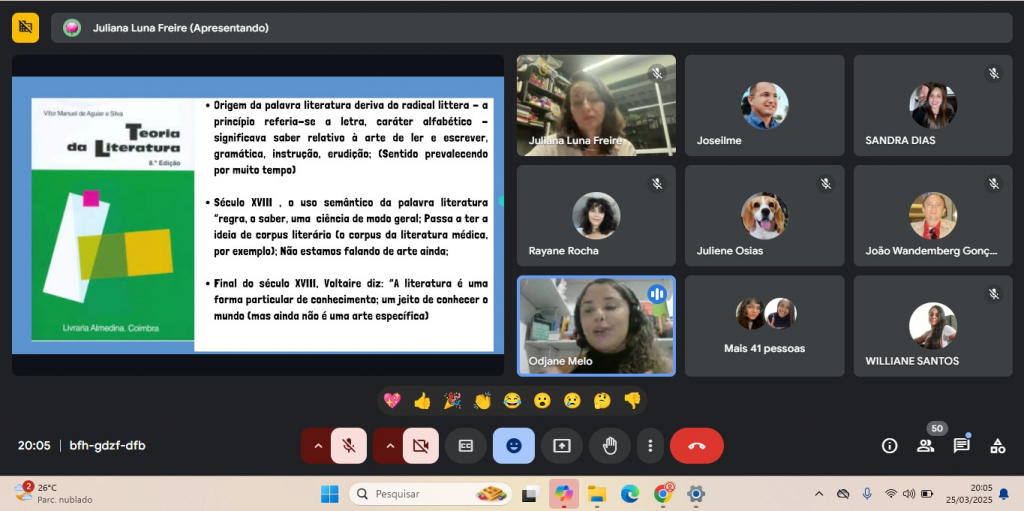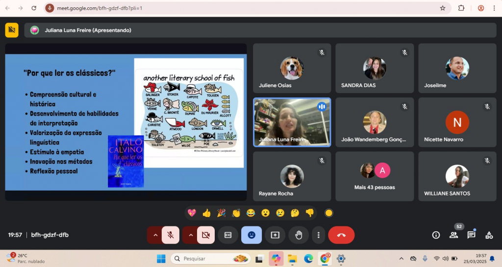A aula foi conduzida pelas colaboradoras Profa. Dra. Juliana Luna Freire, Rebeca Monteiro e Odjane Melo, promovendo motivação e interesse pela literatura.